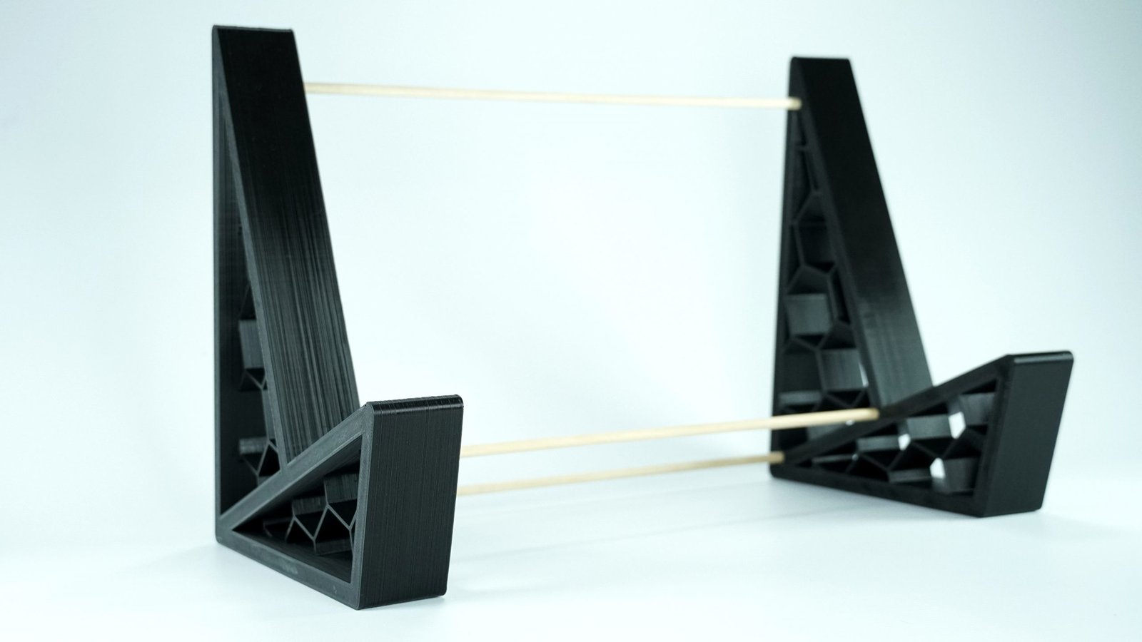 Se utiliza un material plástico resistente y duradero, como el PLA para imprimir en 3D el soporte. Esto garantiza que pueda soportar el peso de varios módulos eurorack sin deformarse ni romperse.