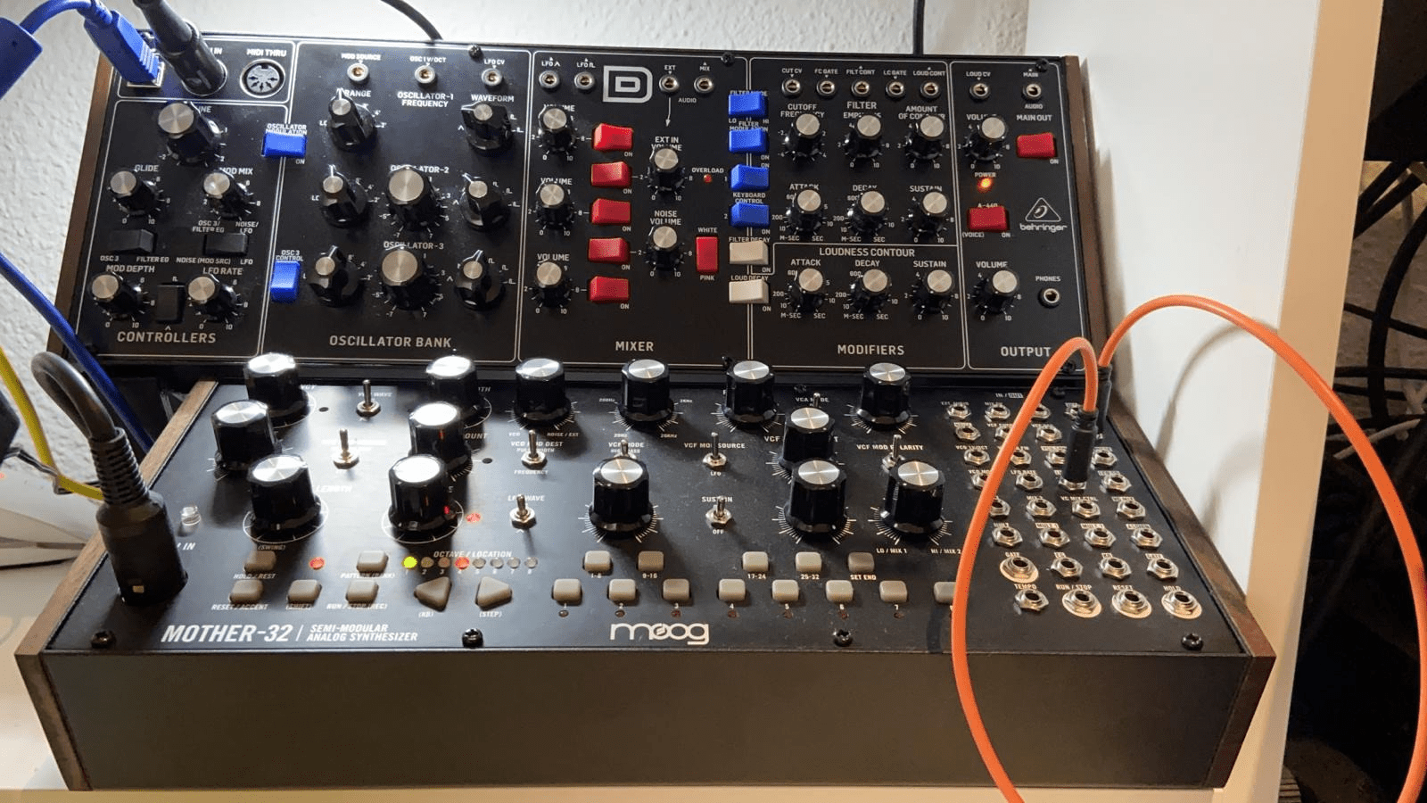 Este soporte está pensado para inclinar y elevar el sintetizador Behringer Model D, con la altura y el ángulo perfecto para colocarlo detrás de un Moog Mother32, DFAM o Subharmonicon.