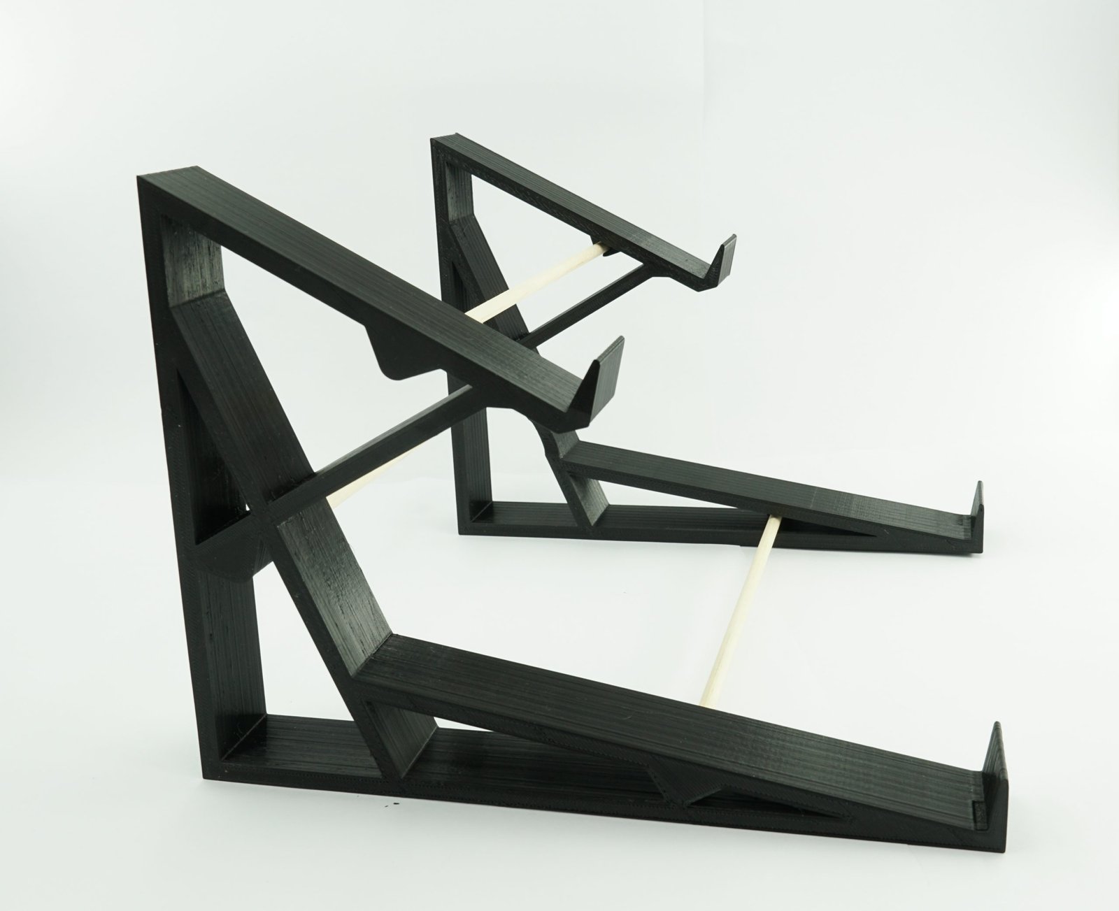 El ancho es ajustable según el largo que tienen las varillas que unen ambos pies.