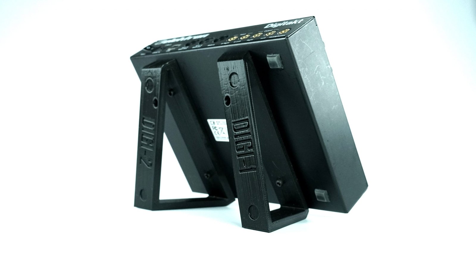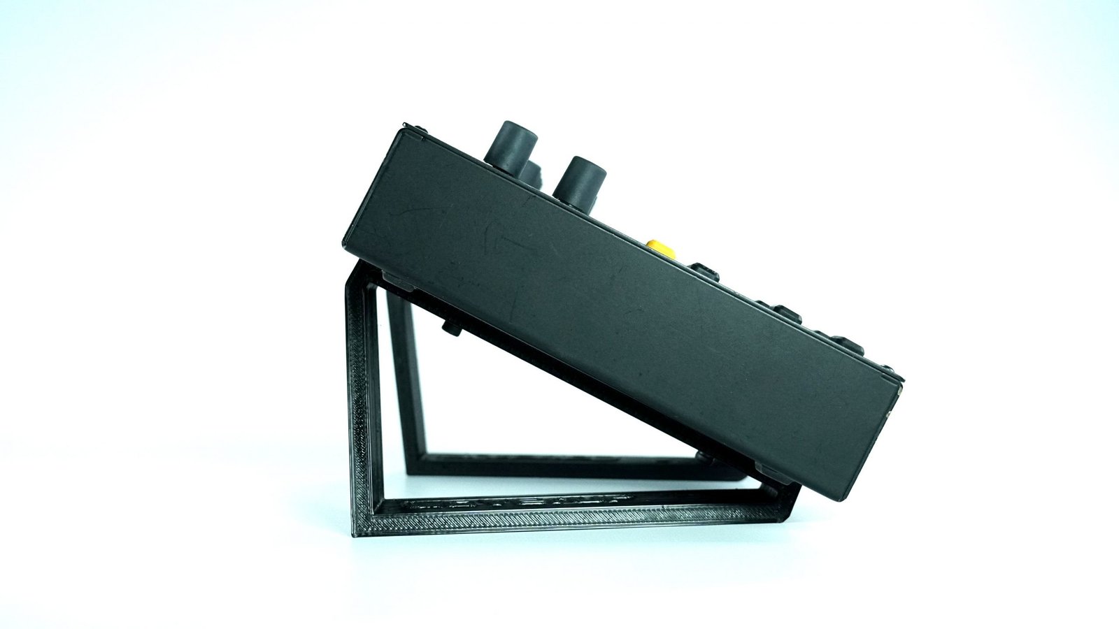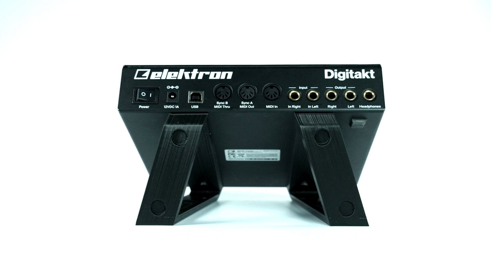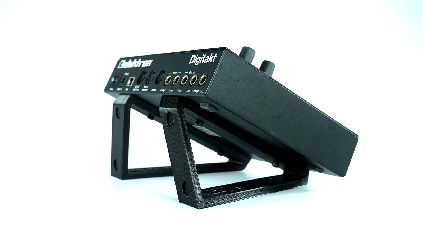 ste soporte especialmente diseñado para Elektron Digitakt / Digitone se atornilla desde abajo al chasis del equipo aprovechando sus puntos de anclaje universal Vesa y permiten usar el equipo en una posición inclinada mucho más ergonómica.