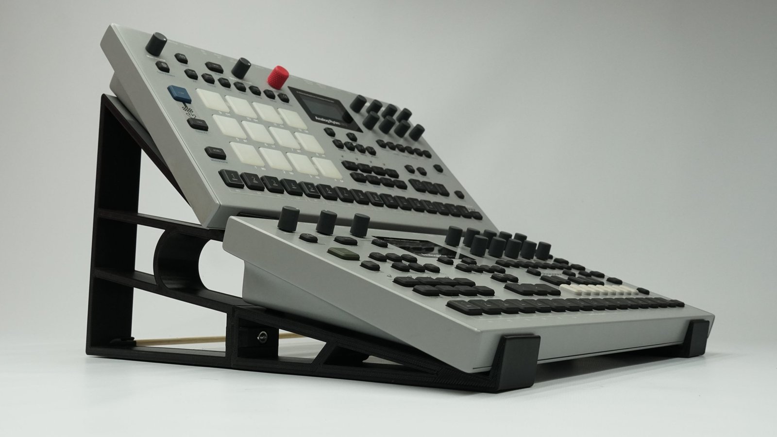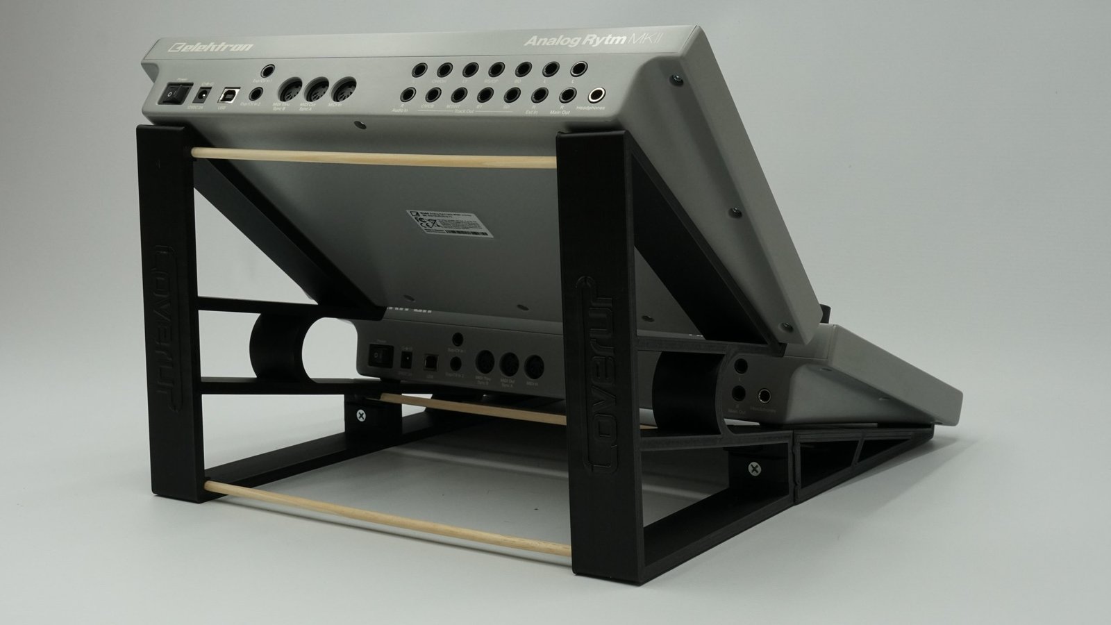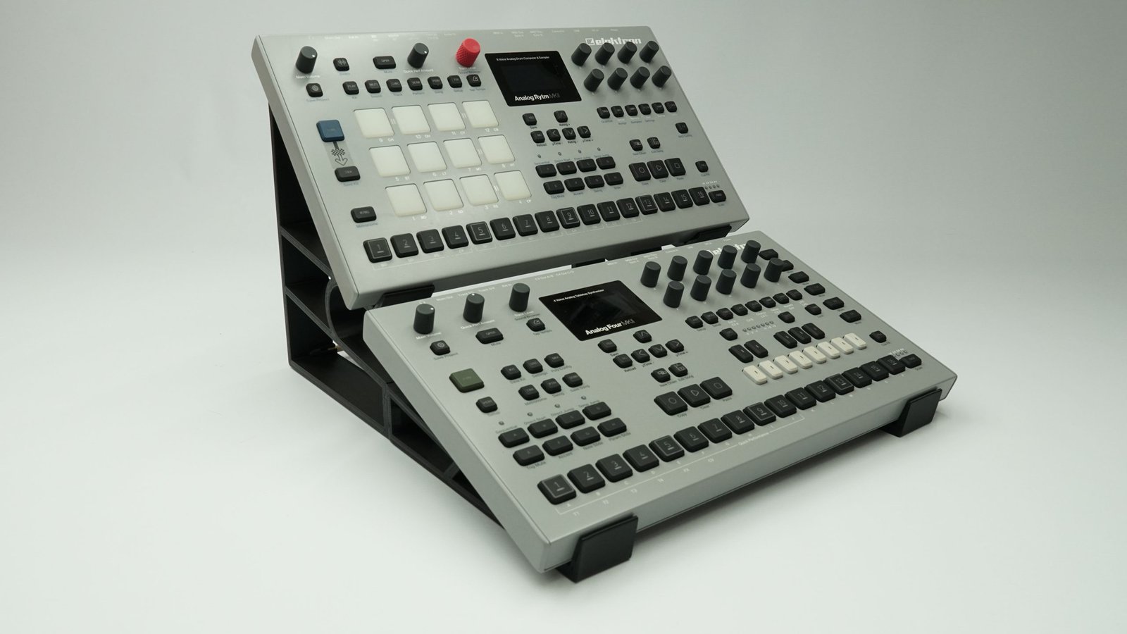 Este soporte fue especialmente diseñado para montar dos sintetizadores Elektron MK2 (Analog Four y Analog Rytm).
