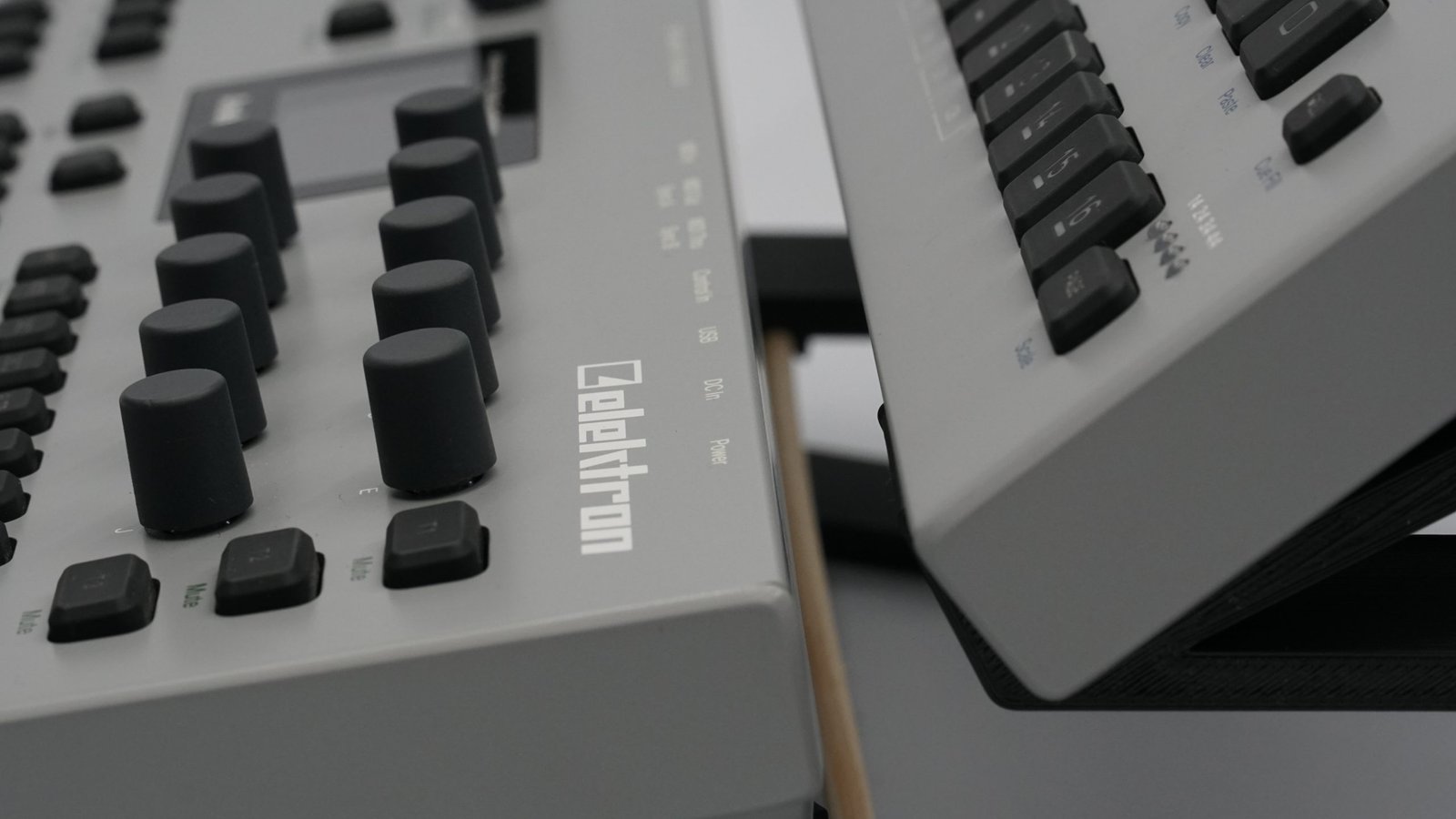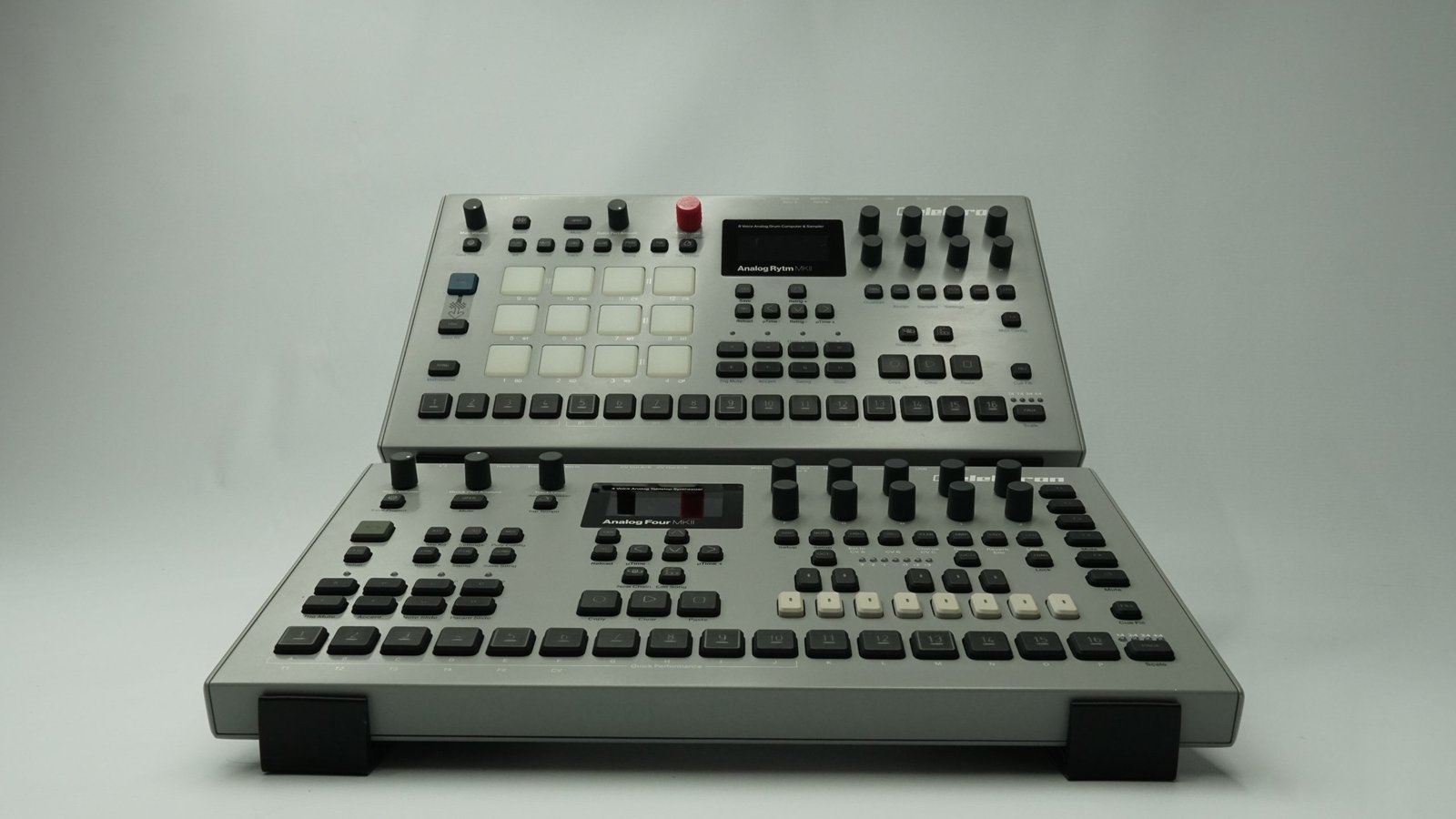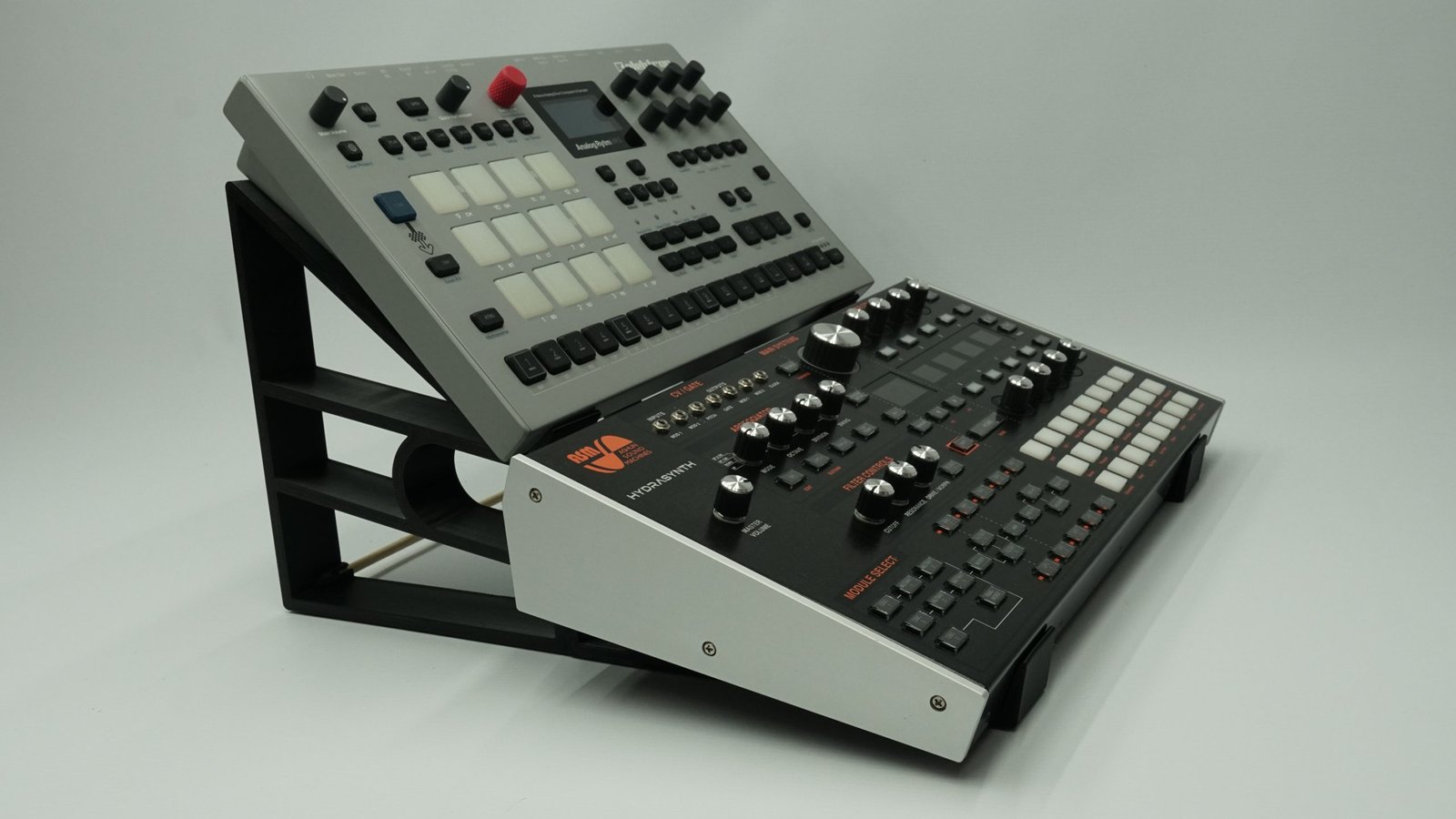 Este soporte fue especialmente diseñado para montar dos sintetizadores Elektron MK2 (Analog Four y Analog Rytm).