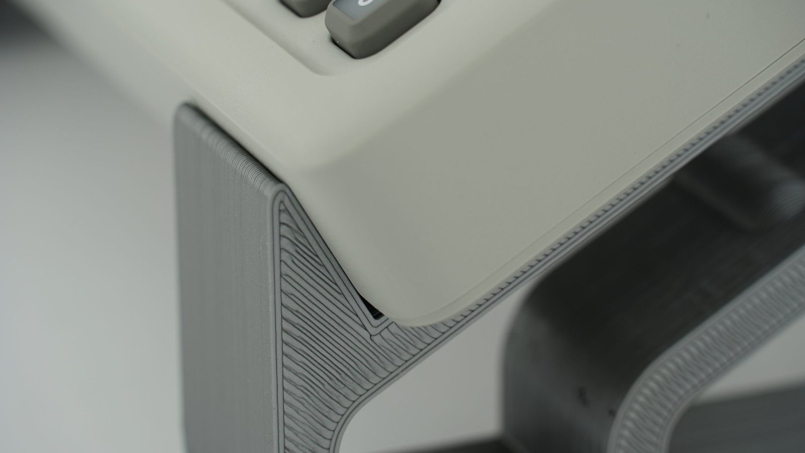 Respetamos la estética redondeada de la serie Model y diseñamos un soporte con curvas.
