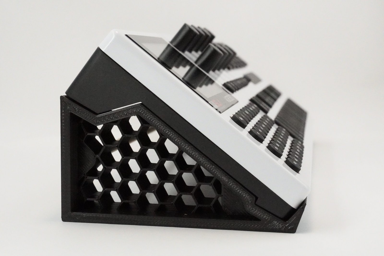 Con la idea de mejorar la vista de su pantalla y acceso a sus funciones, diseñamos este soporte ergonómico.