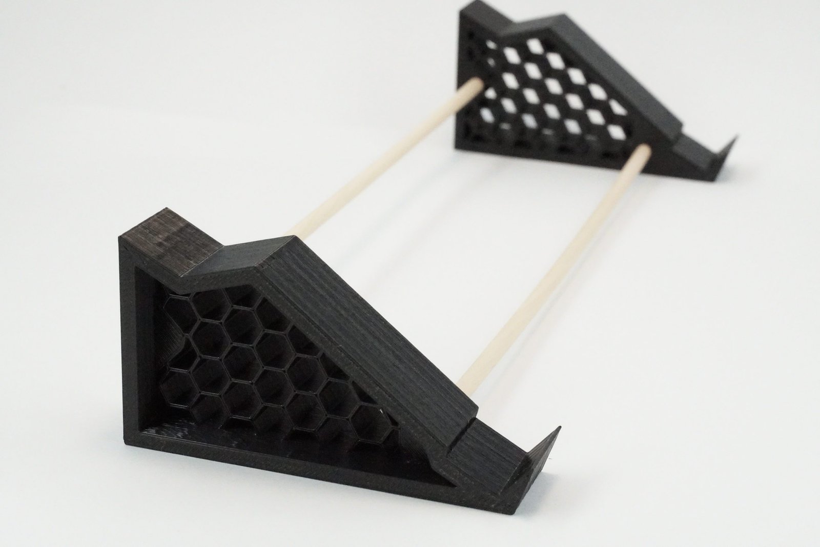 Ambos pies están unidos por varillas y en su parte inferior tienen patitas de goma para que no rayen ni resbalen.