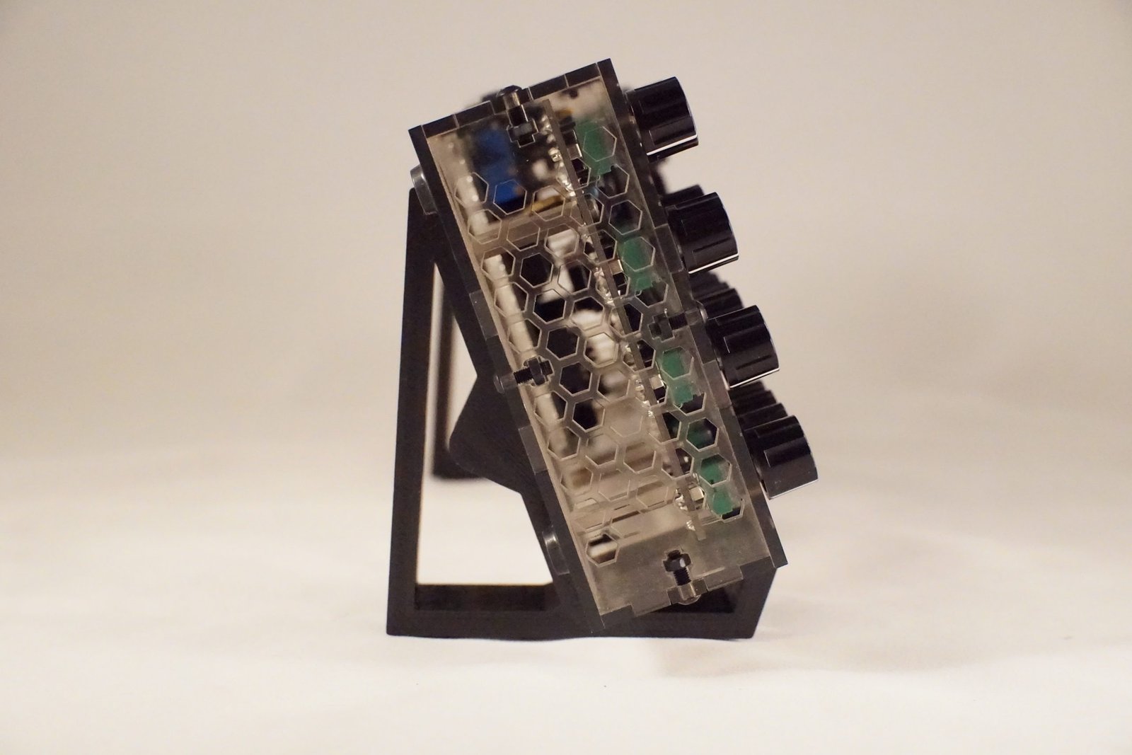 Este soporte diseñado para elevar e inclinar el Shruthi XT de Mutable Instruments.