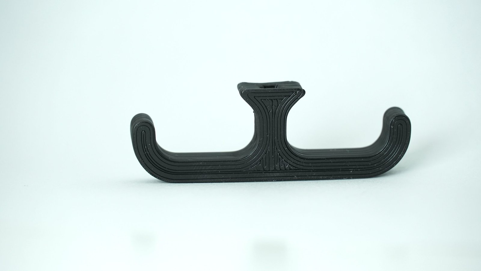 Un soporte en forma de ancla, diseñado específicamente para soportar el peso y la variedad de cables típicos de un estudio de audio con sintetizadores. Este producto, impreso en 3D, combina funcionalidad y estética.