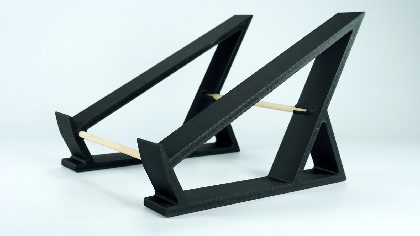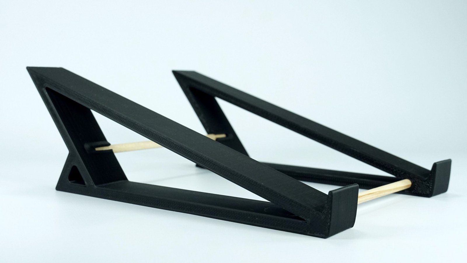 Las varillas de madera que unen ambos laterales del soporte le dan rigidez y estabilidad al conjunto.