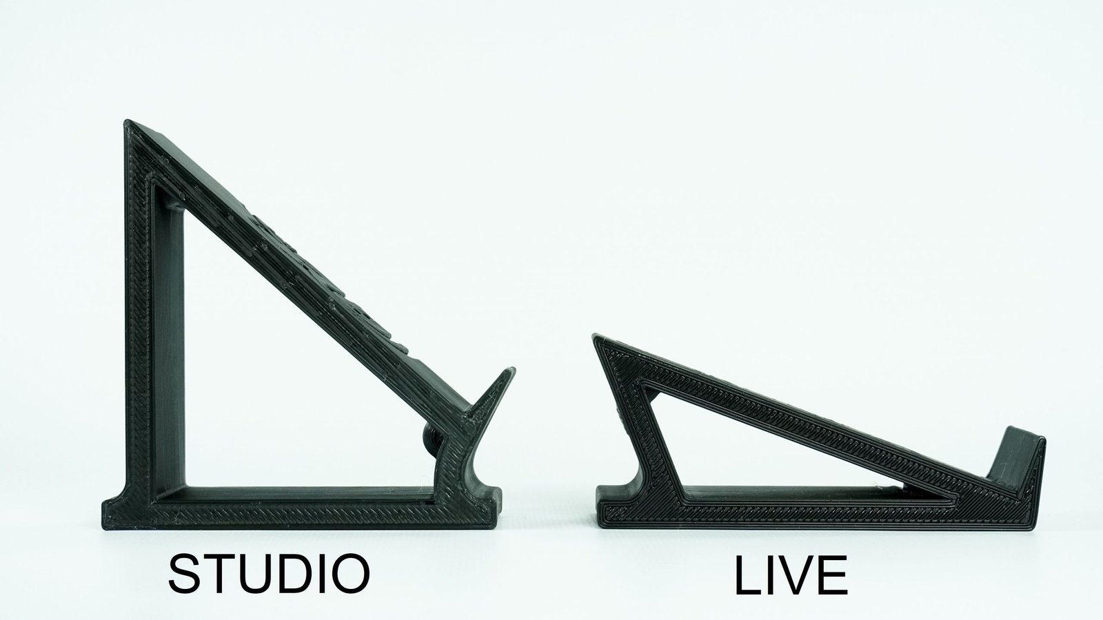 El soporte Studio tiene mayor inclinación y está elevado.