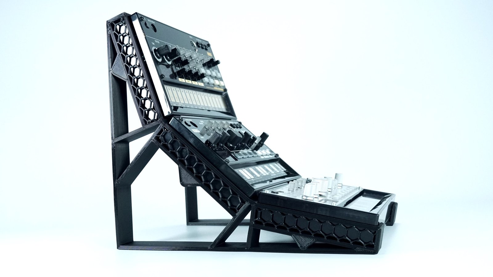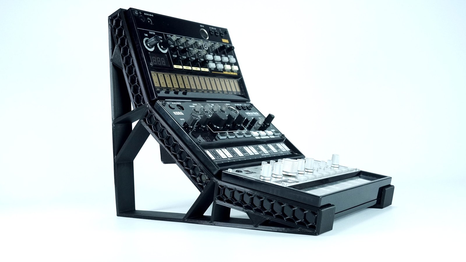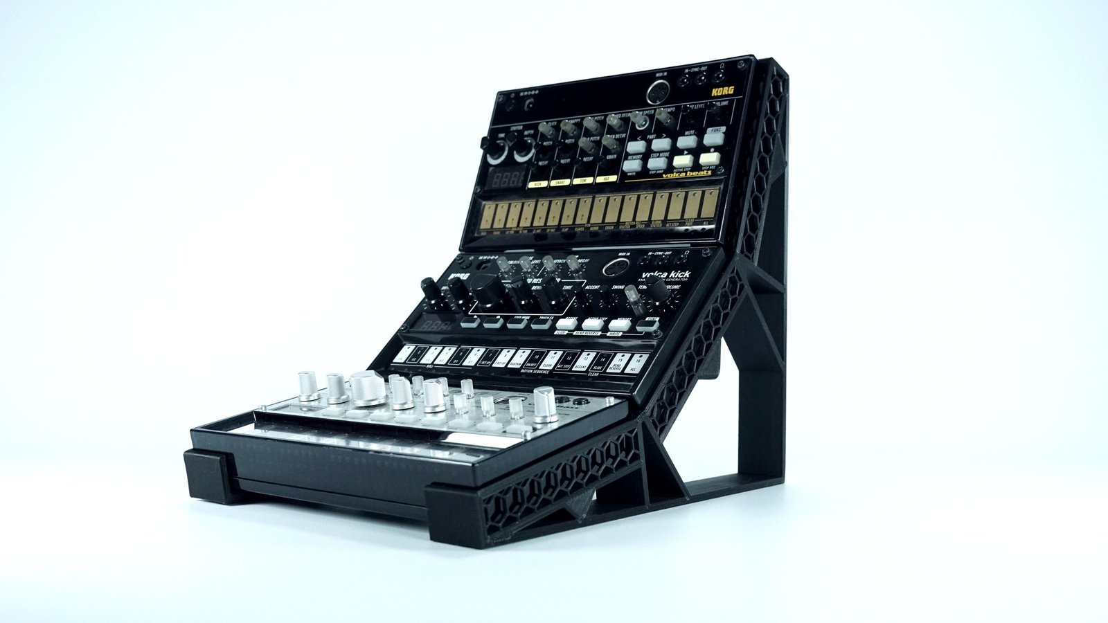 Los soportes se arman sin necesidad de tornillos o piezas móviles. Esto los hace fáciles de transportar y utilizar para aquellos que salen a tocar en vivo con sus Volca.